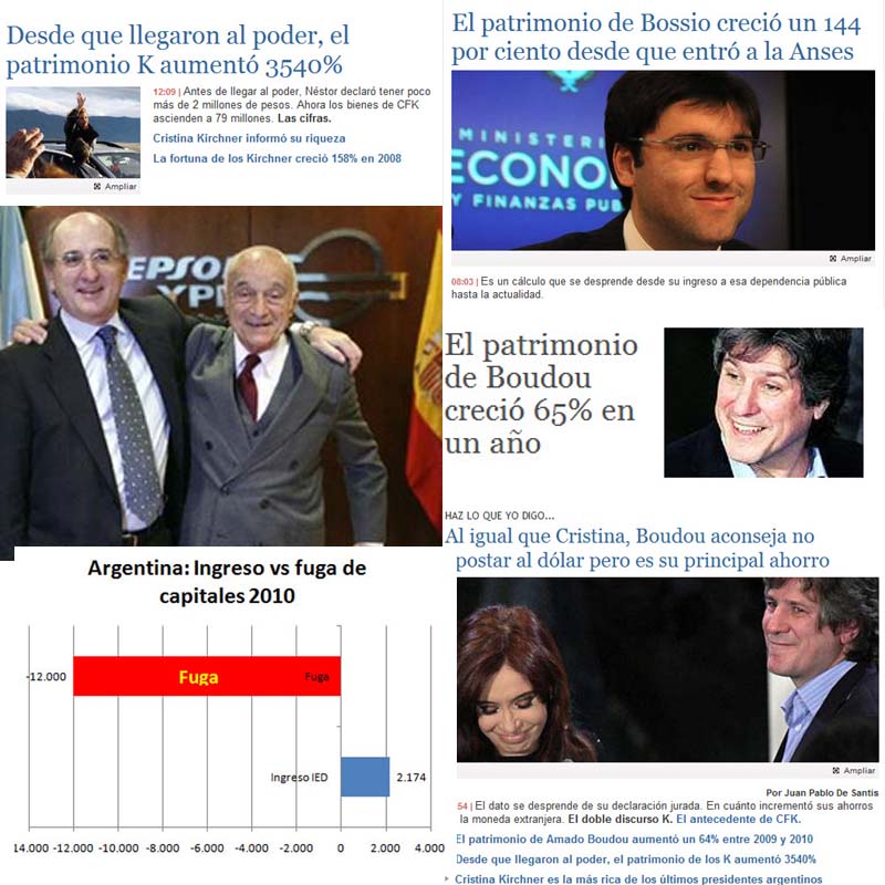 compran dólares, oro y los sacan cuidadosamente de los bancos nacionales, siguiendo el ejemplo de la Presidente Kirchner y sus ministros, cuyas declaracones juradas reflejan la velocidad ultrasónica del enriquecimiento